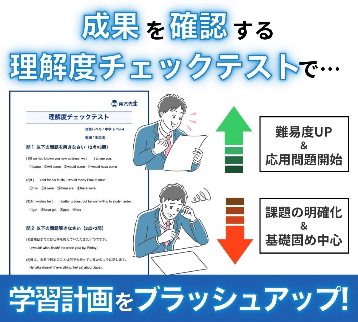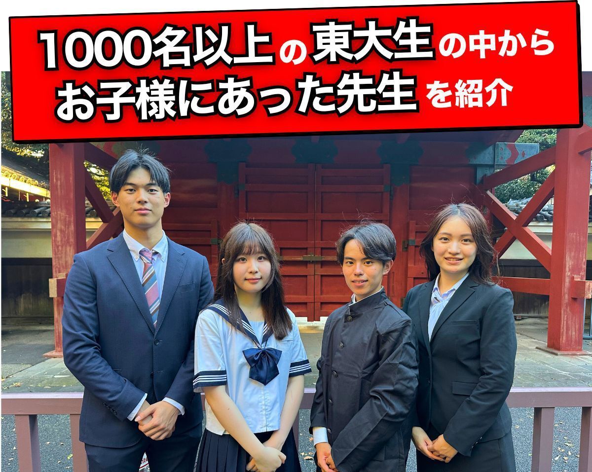 いいえ、そんなことはありません。東大先生には様々な目標を掲げた生徒様がいらっしゃいます。学校の定期試験対策から模試対策、受験対策や日々の学習のサポートまでお子様のニーズに合わせて、一から丁寧に学習戦略を立案し、成績アップへと導かせて頂いております。