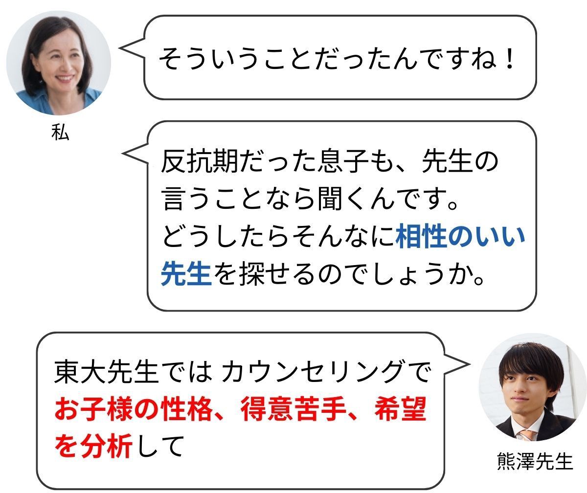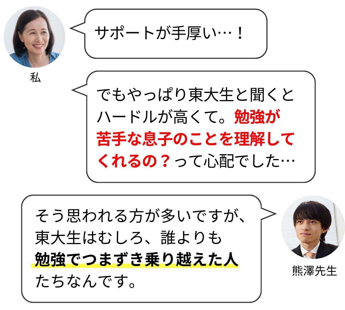 今では先生はただ頭がいい方というより、息子のことを誰よりもわかってくれて、私がどう息子と向き合えばいいかもお話してくれたり本当に寄り添ってくださって私たち家族になくてはならない存在です。
